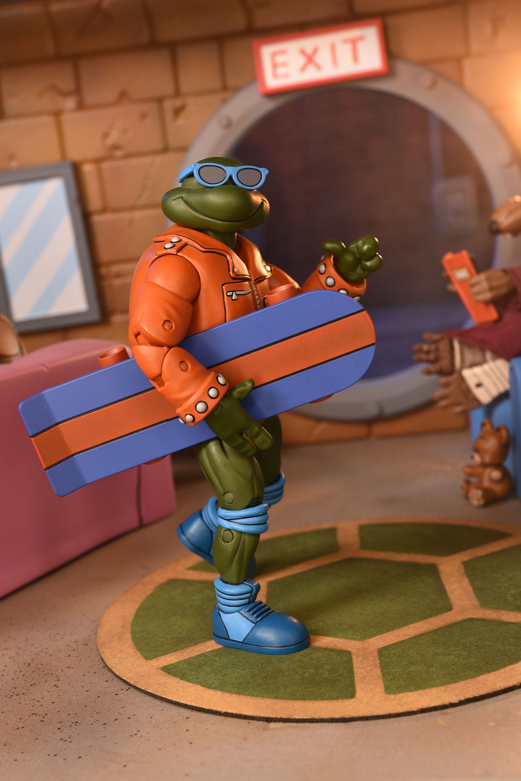 Zur Cartoon-Serie von Teenage Mutant Ninja Turtles kommen diese coolen Actionfiguren. Sie sind ca. 18 cm groß und werden mit weiterem Zubehör in einer Fensterbox geliefert.